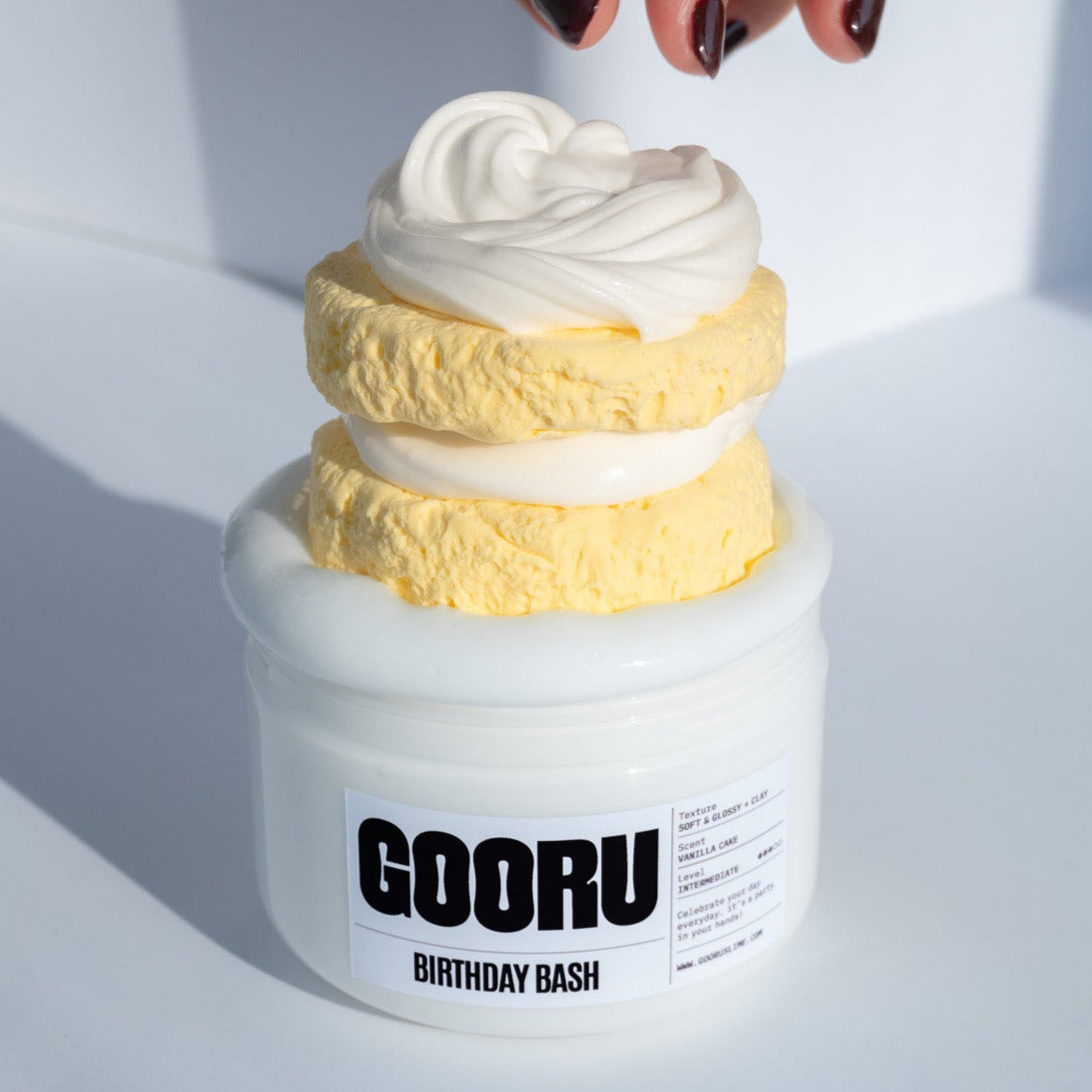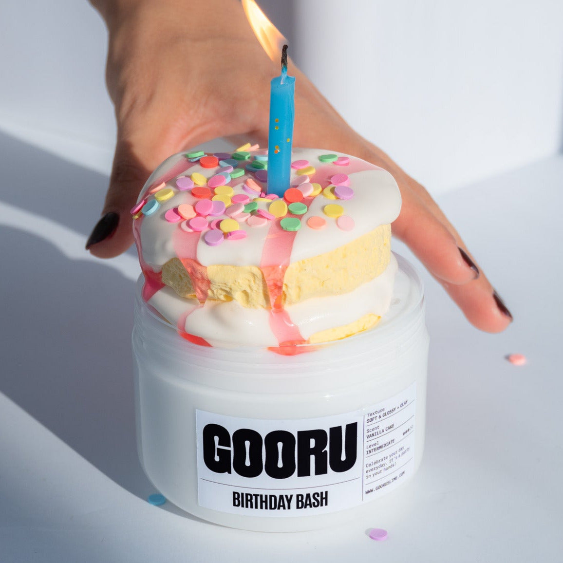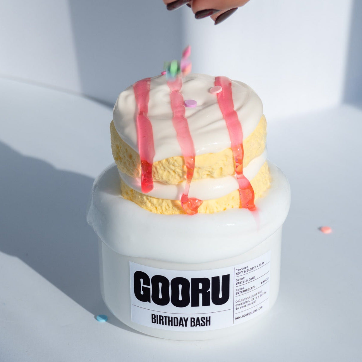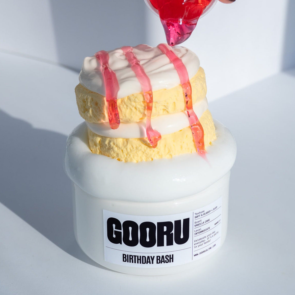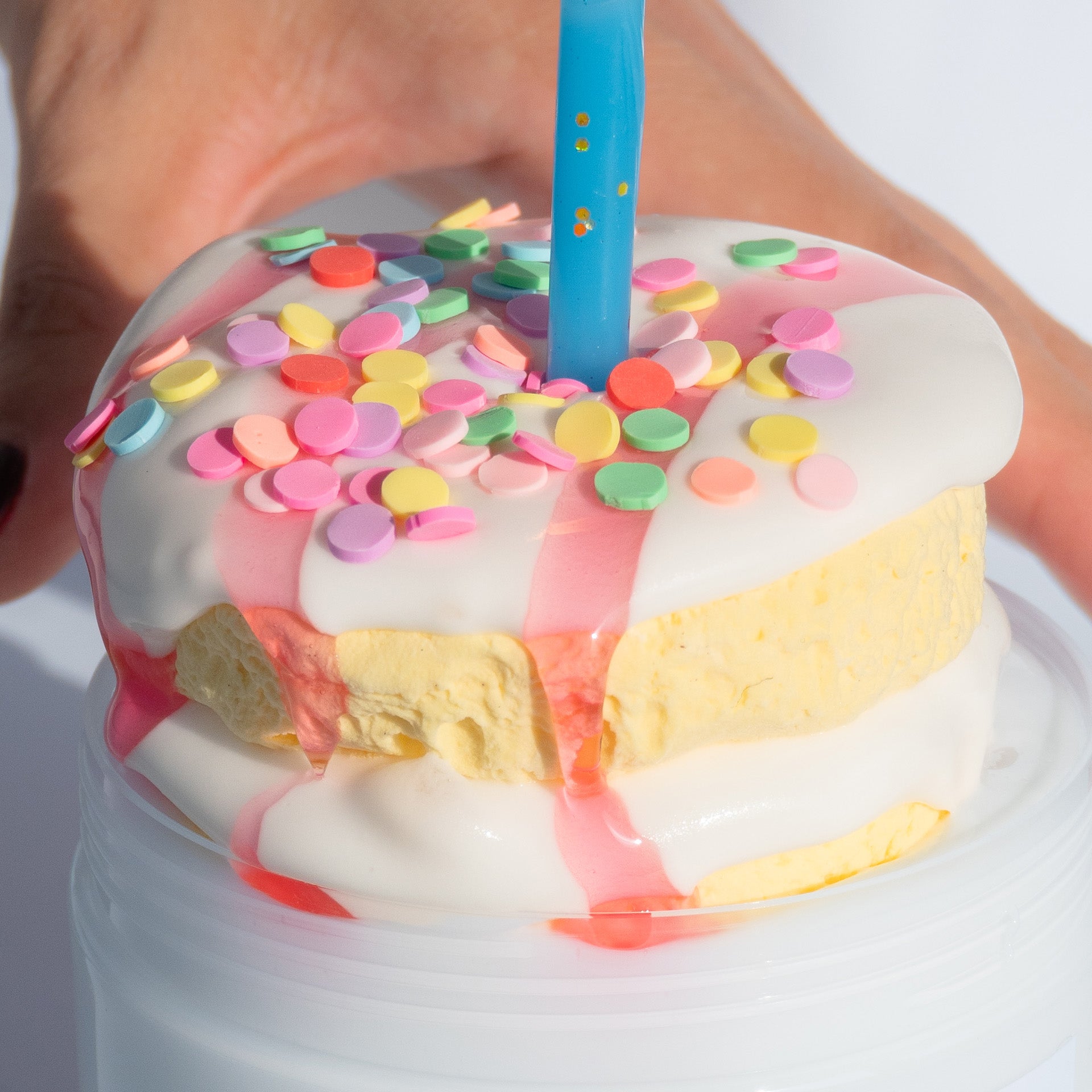 Cake slime with clay layers, sprinkles, and sweet scent. The perfect birthday gift or dessert slime pick.
