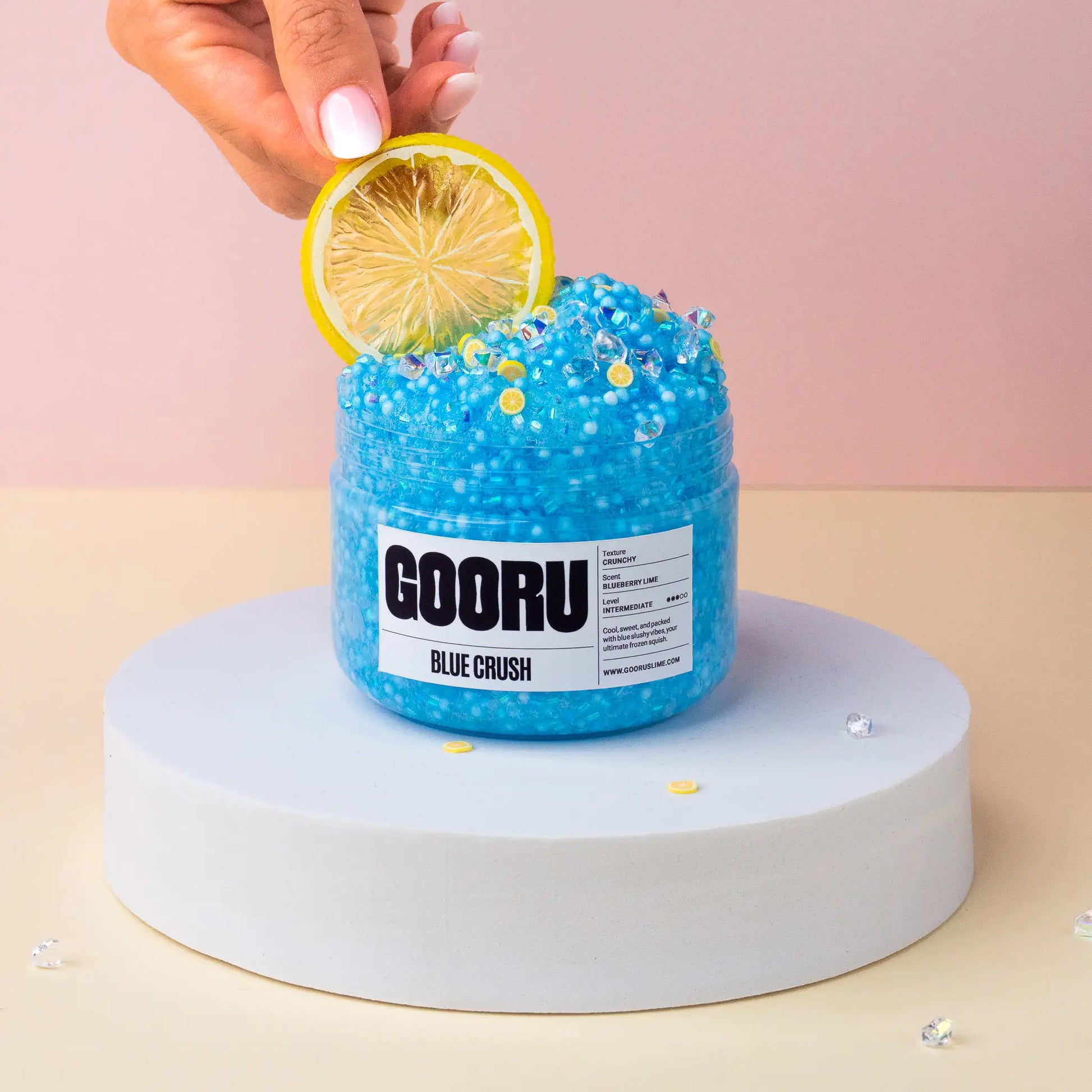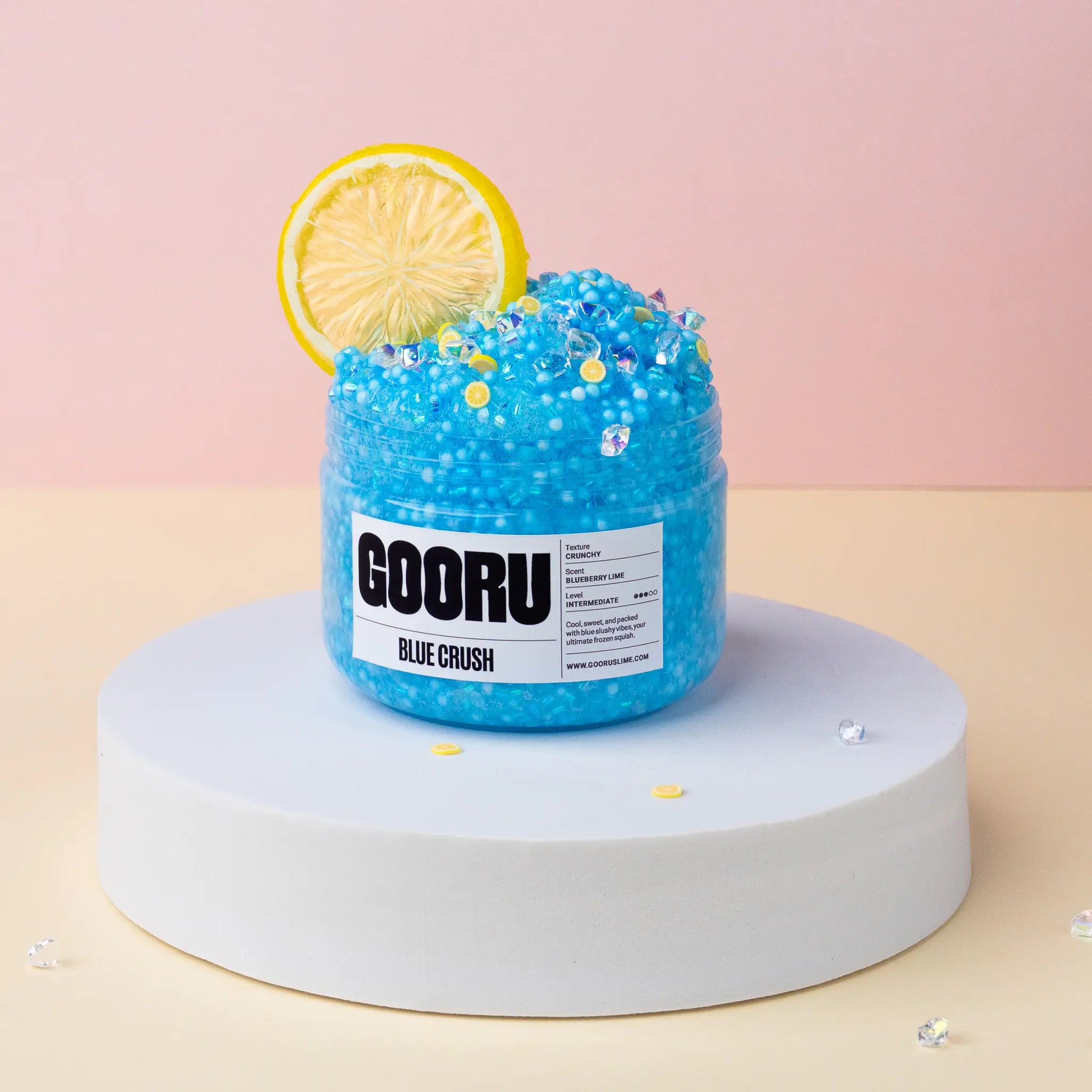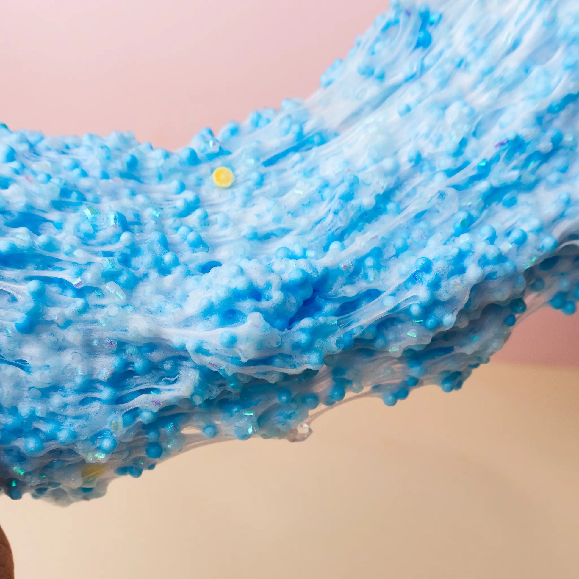 Crunchy blue slime with citrus scent and lemon charms. Frozen drink inspired texture for fruity slime fans.