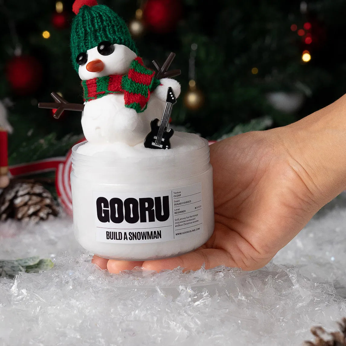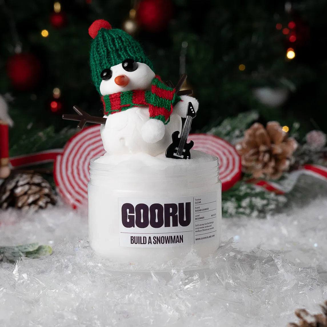 Build a Snowman is an icee and clay slime with sugar cookie scent and a snowman topper for wintery fun.