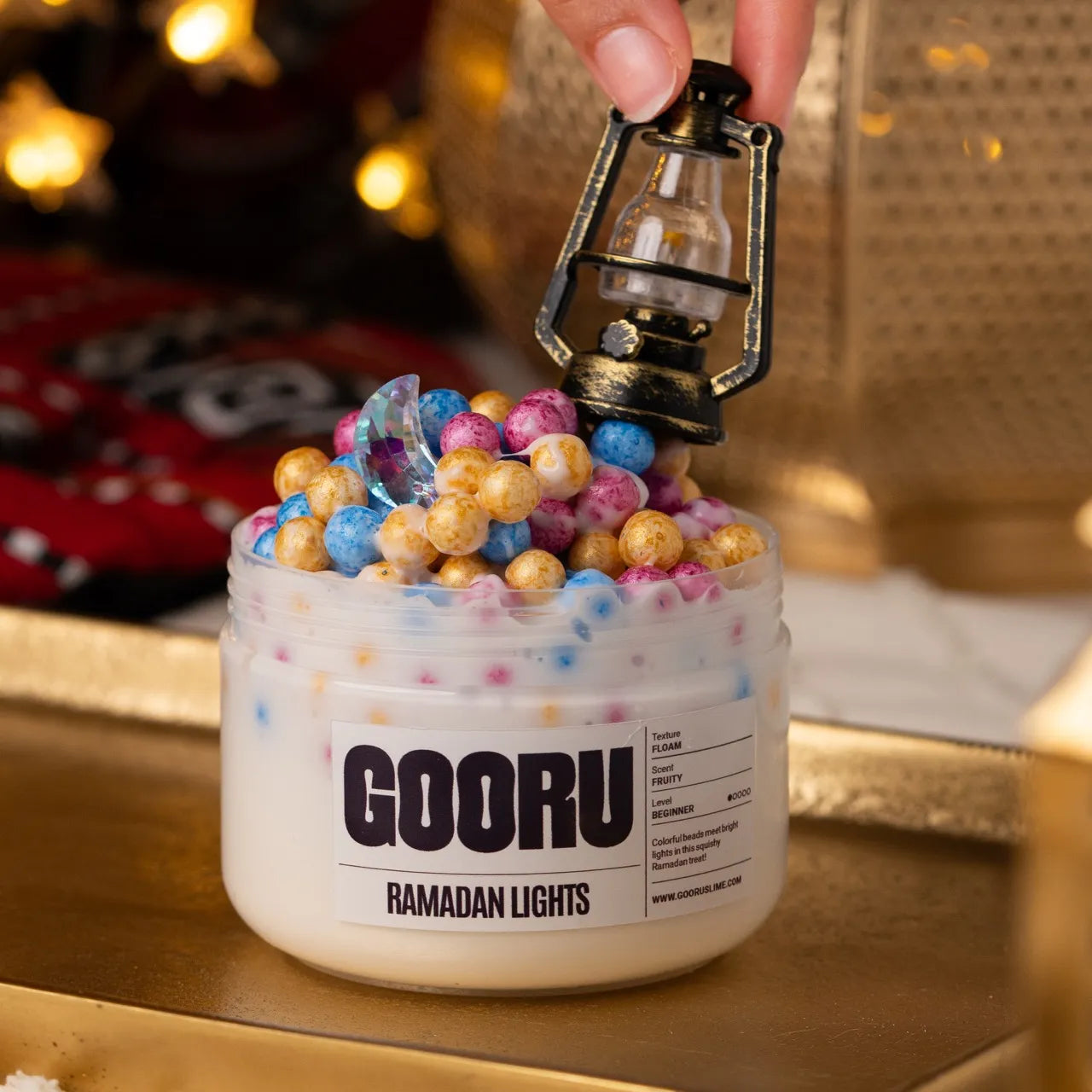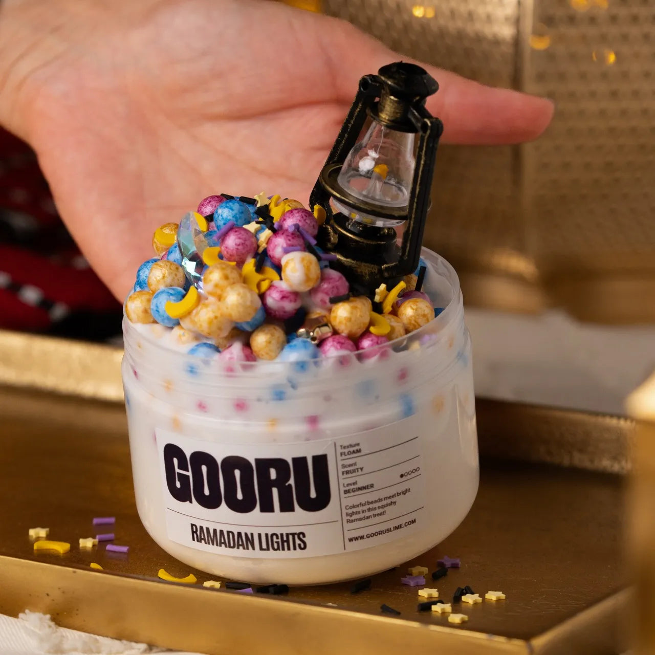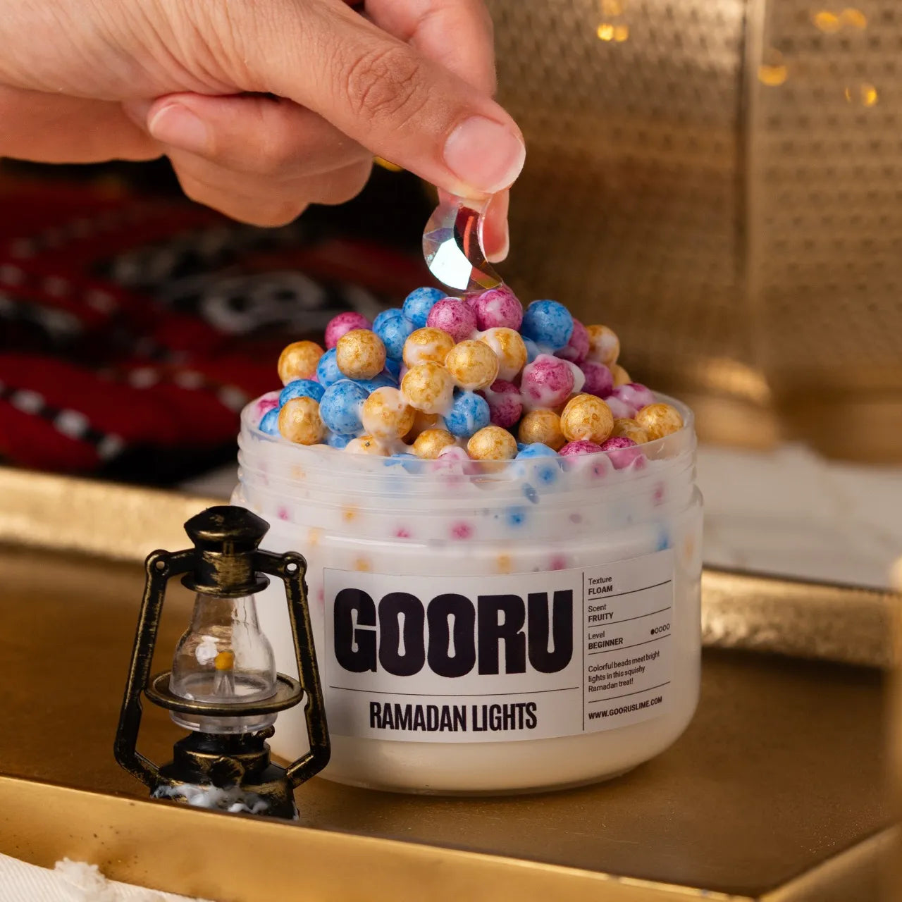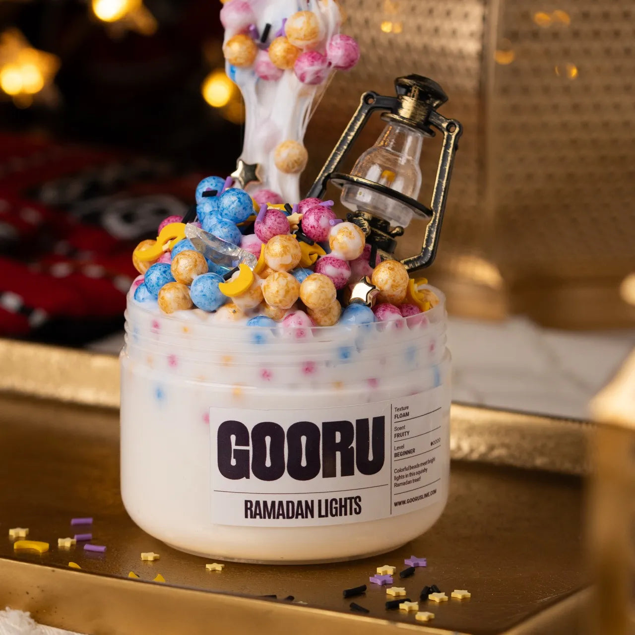 Ramadan Lights is a fruity floam slime filled with colorful beads and festive Ramadan cheer.