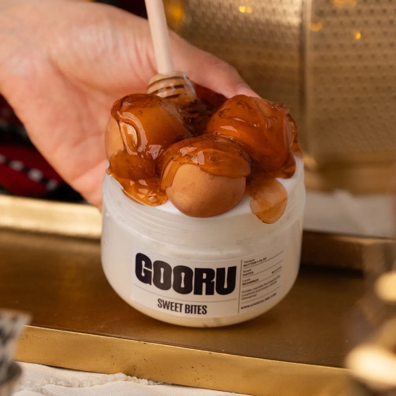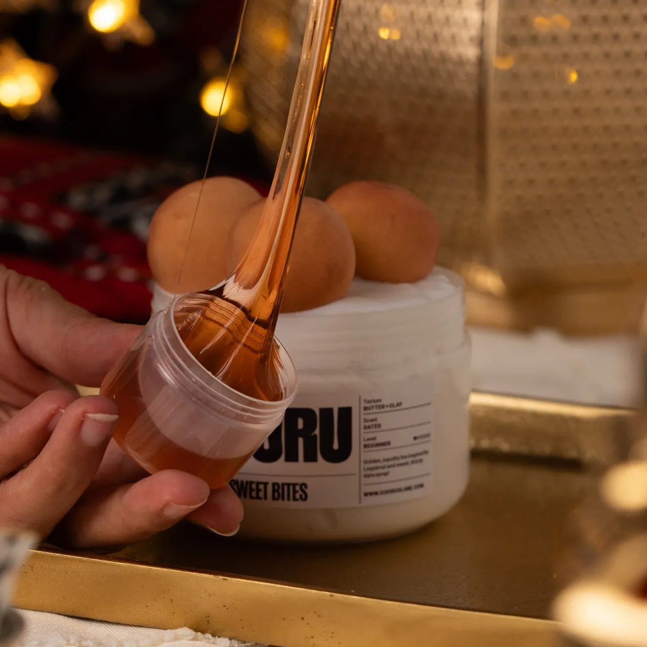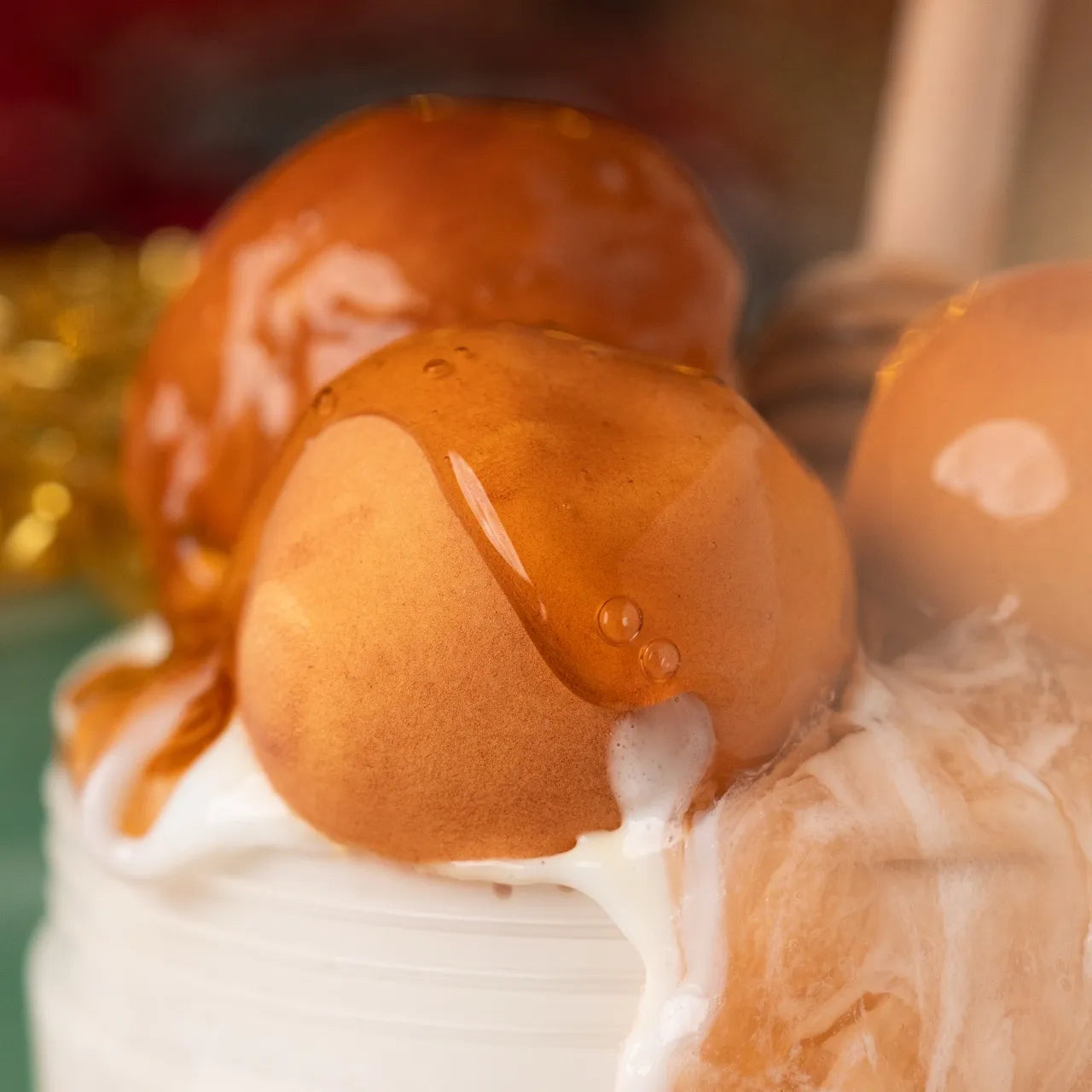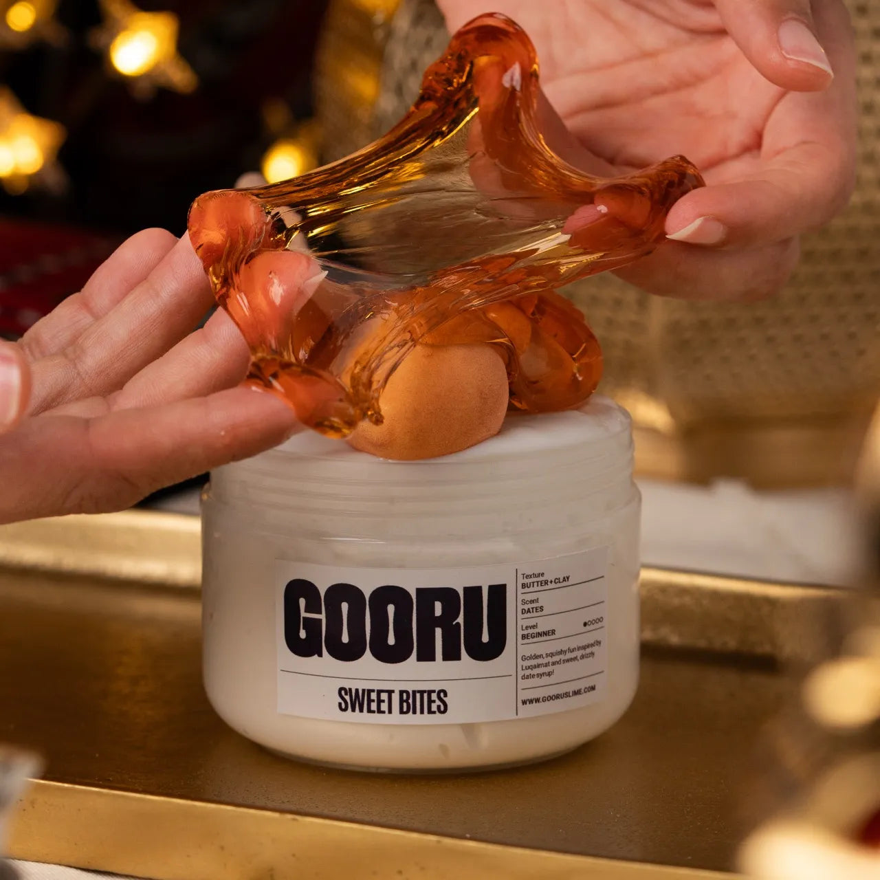 Sweet Bites is a butter and clay slime scented like dates, inspired by luqaimat and Eid treats.