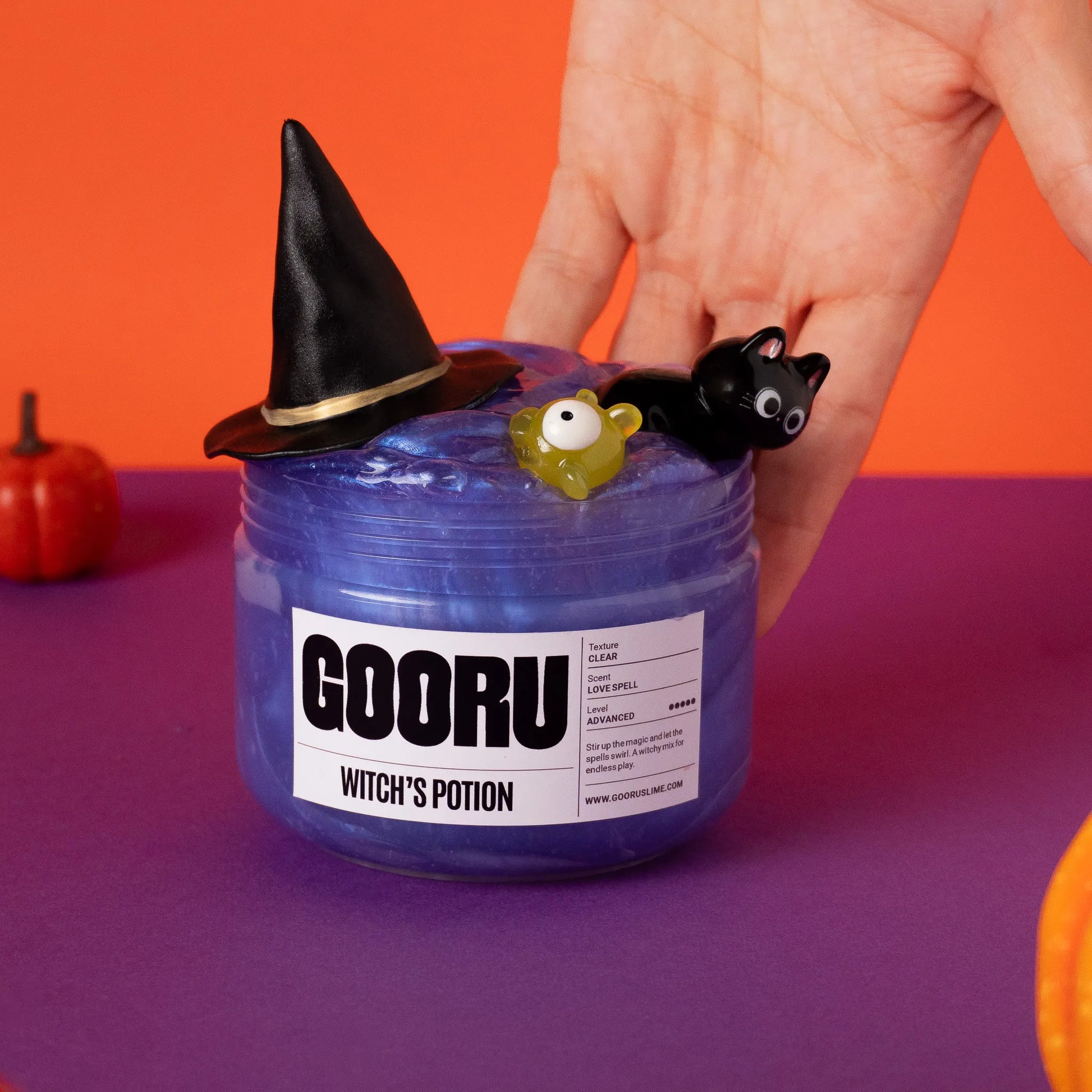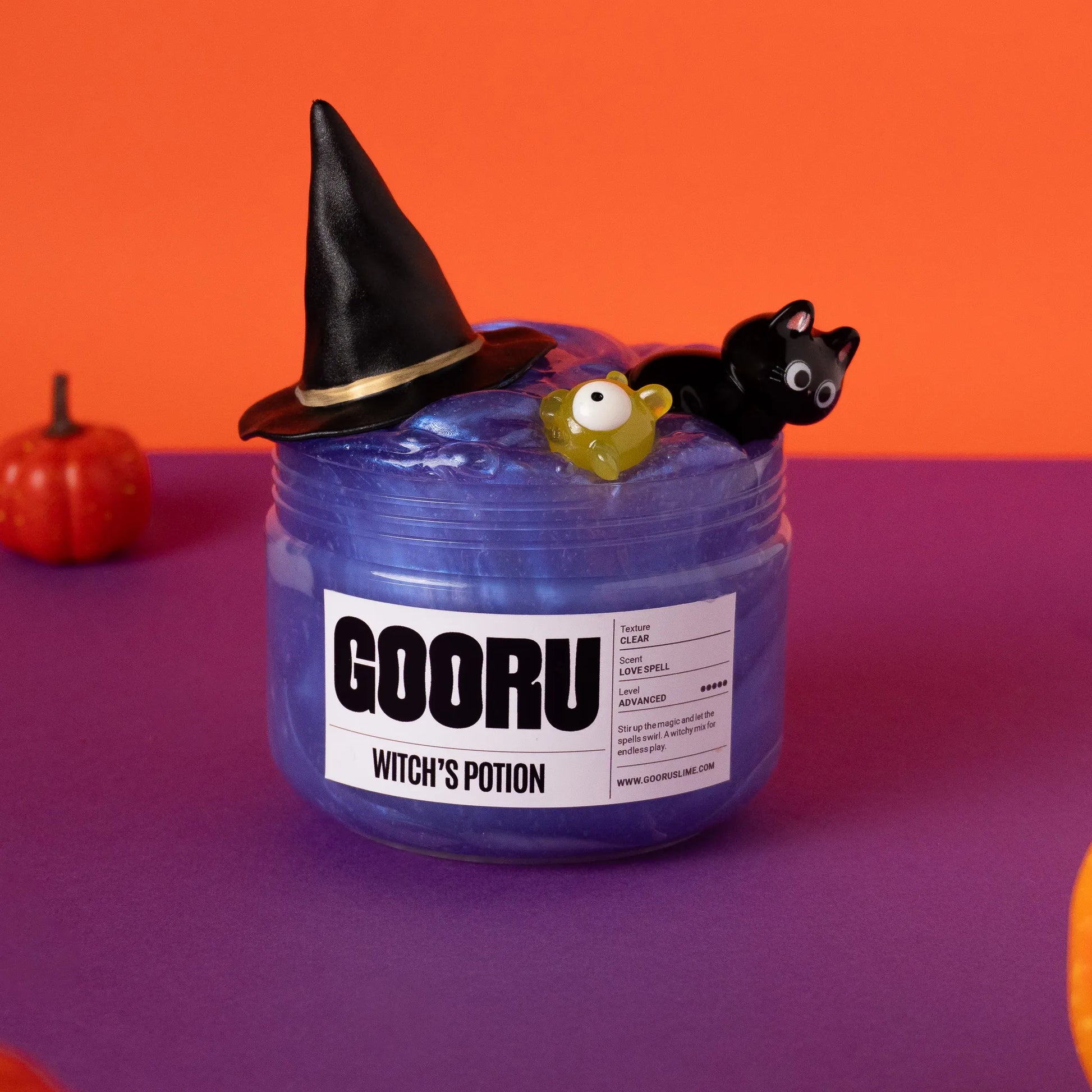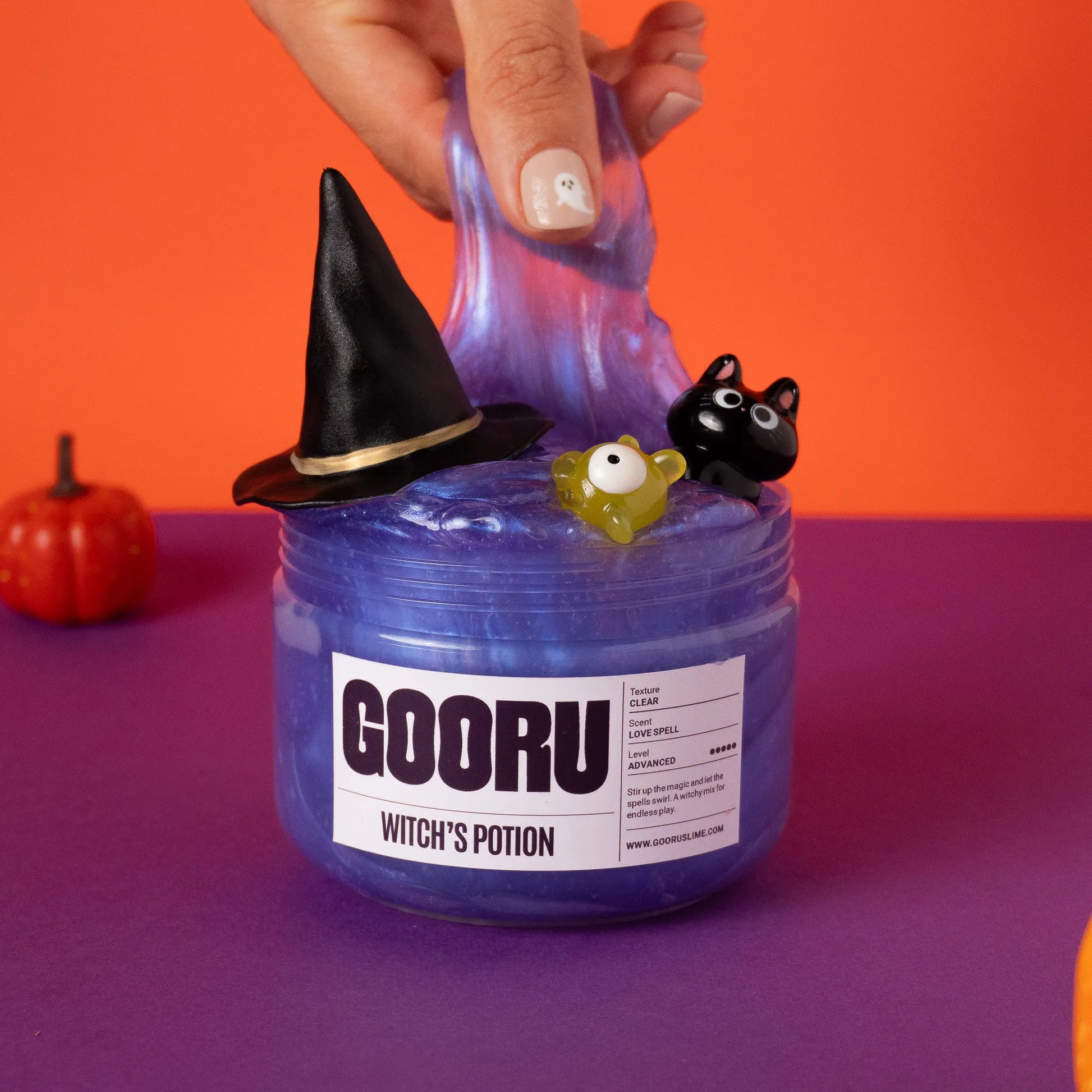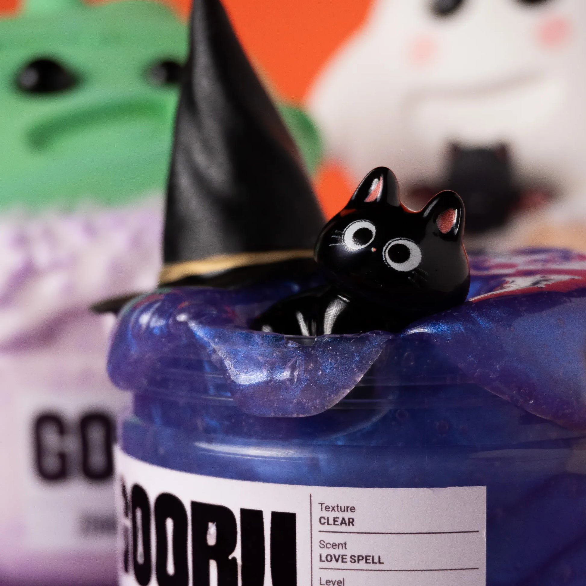 Clear Love Spell slime with magical stretch, witchy vibes, and spooky charms. A Halloween favorite for mixing, squishing, and spellbinding fun.