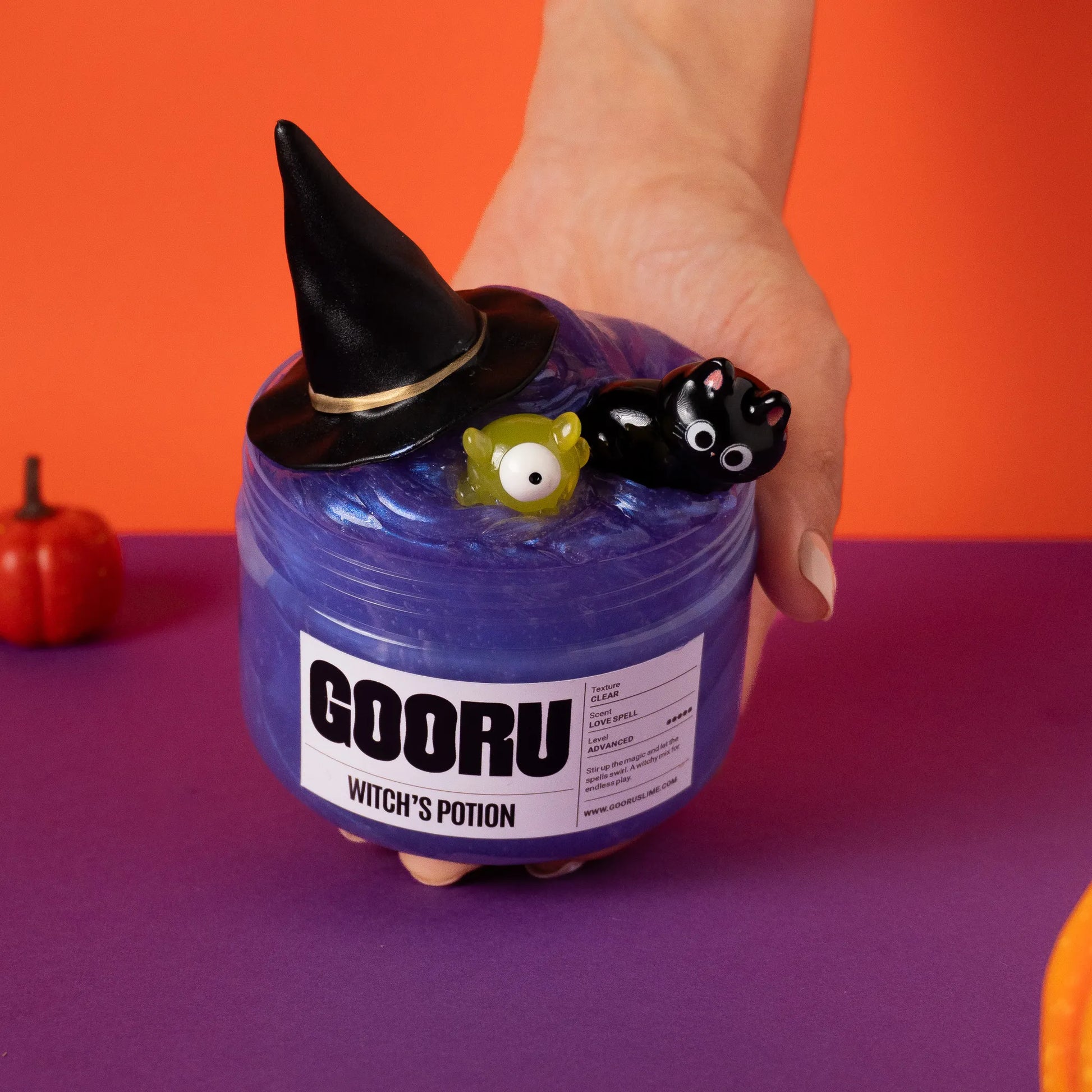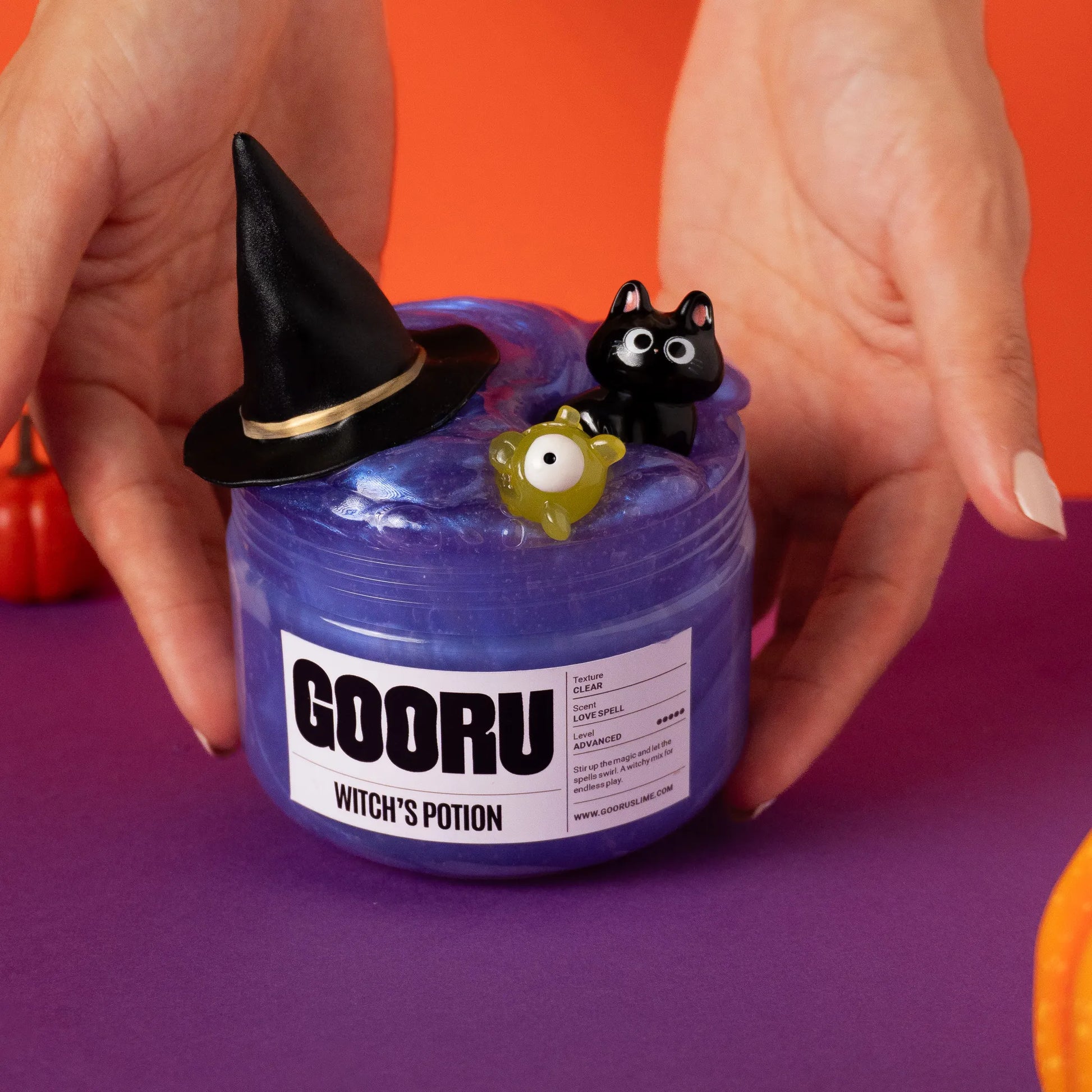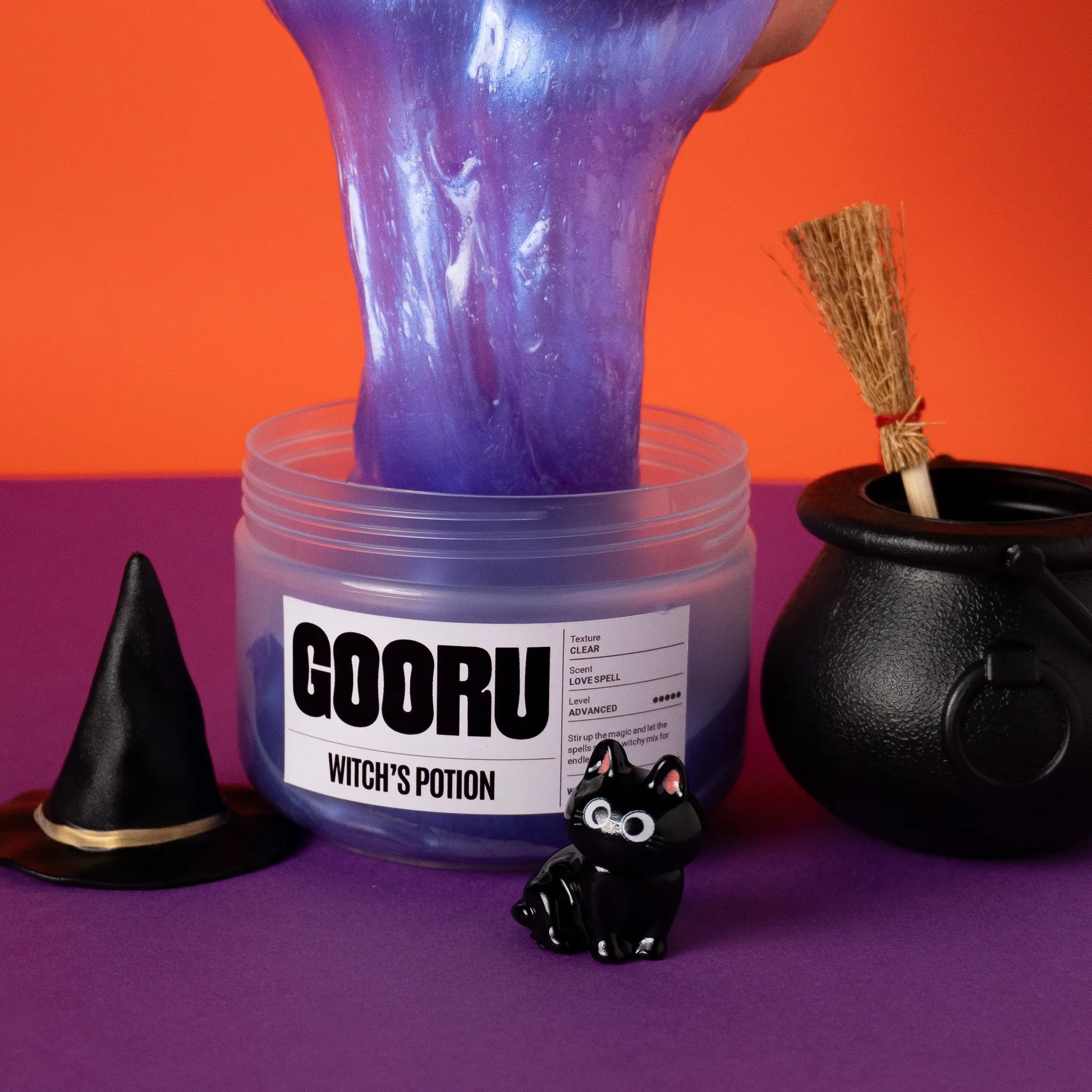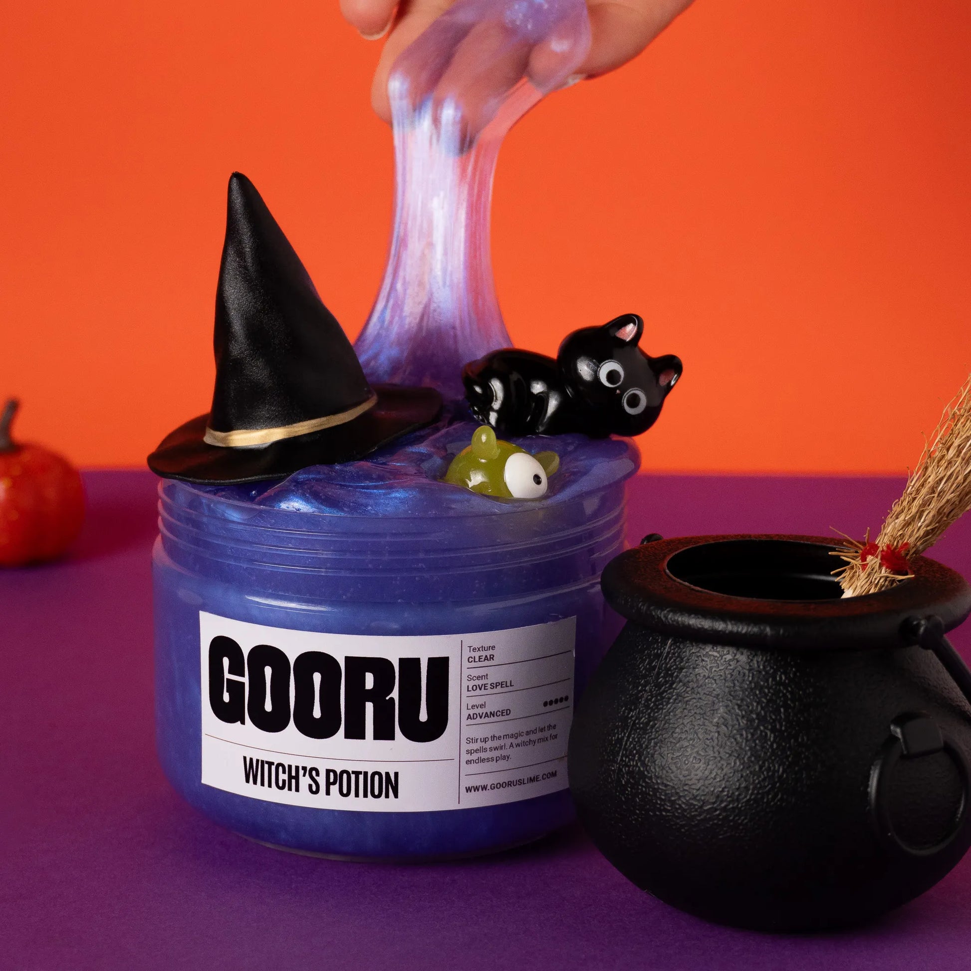Clear Love Spell slime with magical stretch, witchy vibes, and spooky charms. A Halloween favorite for mixing, squishing, and spellbinding fun.
